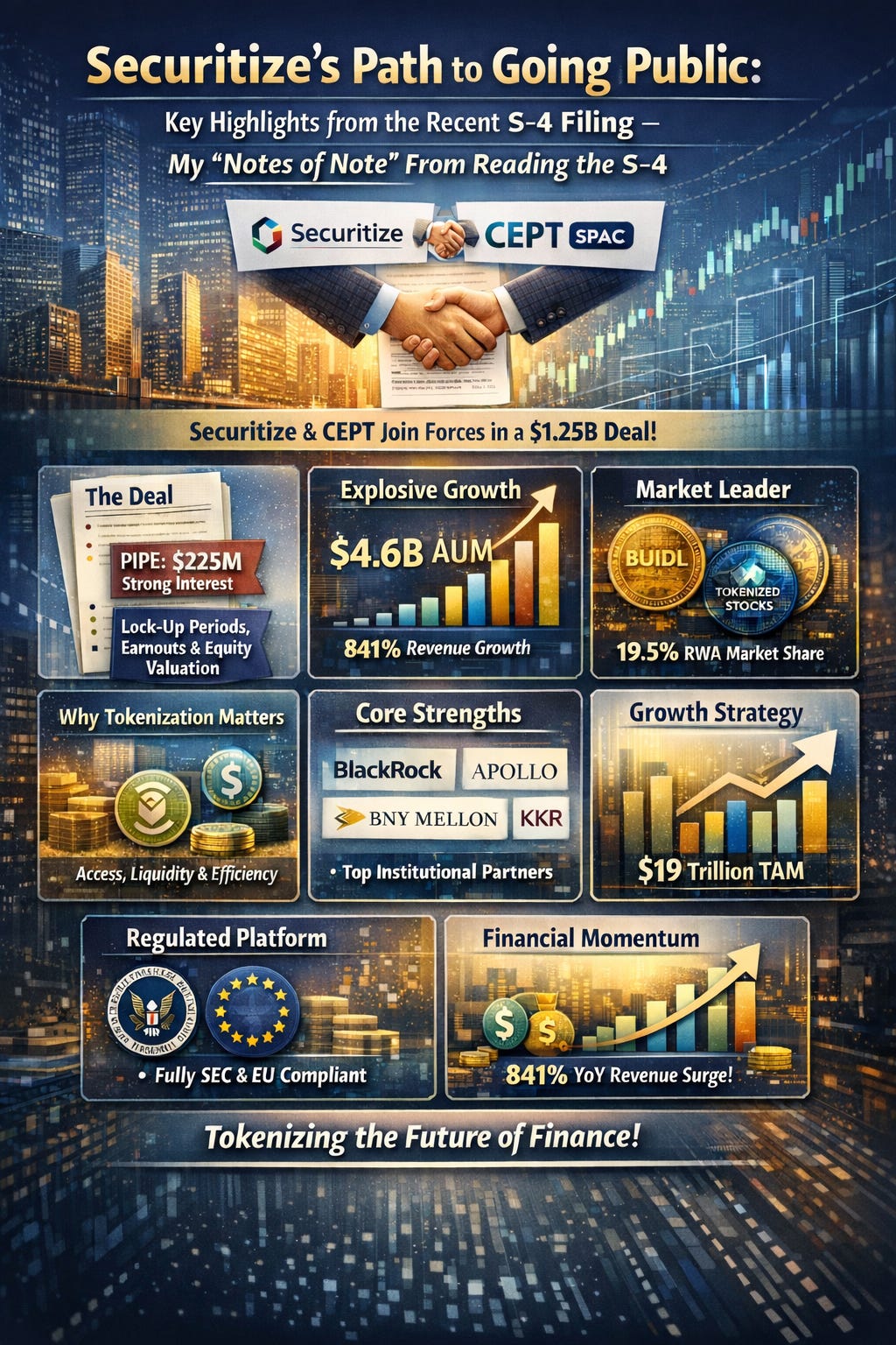 The latest S-4 filing for the proposed business combination between Securitize and $CEPT (Cantor Equity Partners II, Inc.) was submitted on January 28, 2026, and it’s packed with details about one of the leaders in real-world asset (RWA) tokenization. I’ve pulled the most subscriber-friendly highlights and organized them into a clear, logical flow: the deal background, Securitize’s impressive growth and market position, why tokenization matters, the company’s core strengths, growth plans, platform details, competitive edge, the supportive regulatory environment and lock-up structure. Let’s dive in!